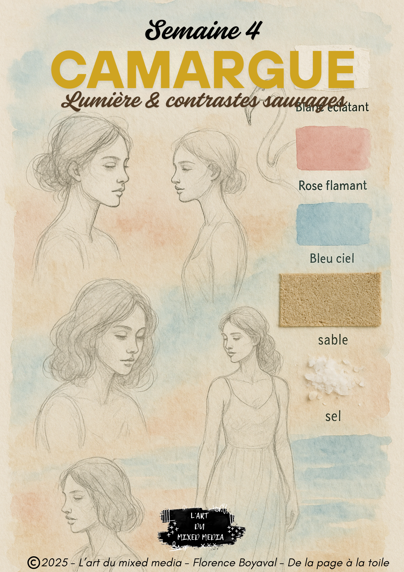 - Accessible à tous niveaux (même si tu n’as jamais fait de portrait, même si tu débutes en mixed media).